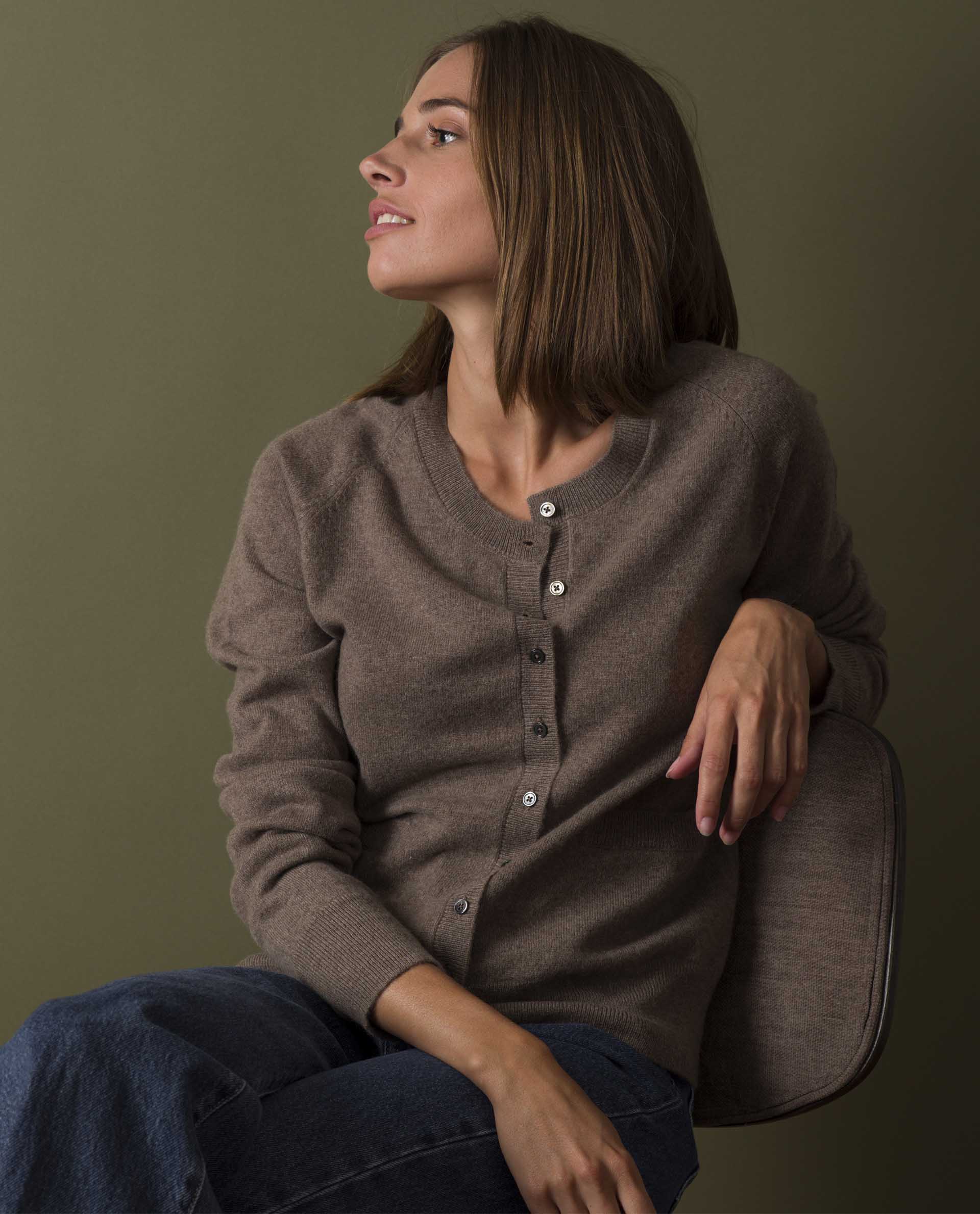 cardigan col rond 100 cachemire Taupe