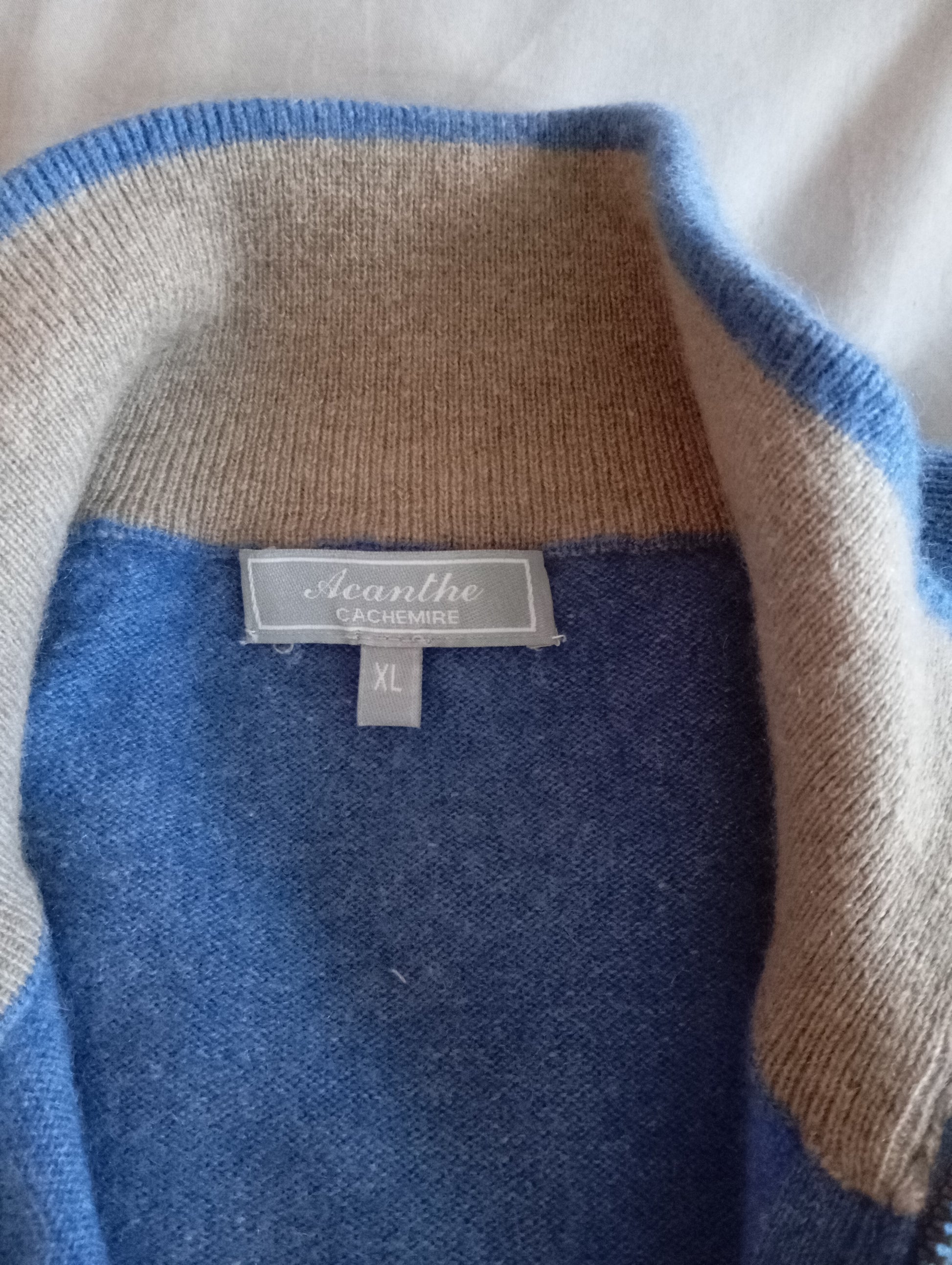 Cardigan zippé col montant. Finition bord-côtes. Laine 90 mérinos/10 cachemire.