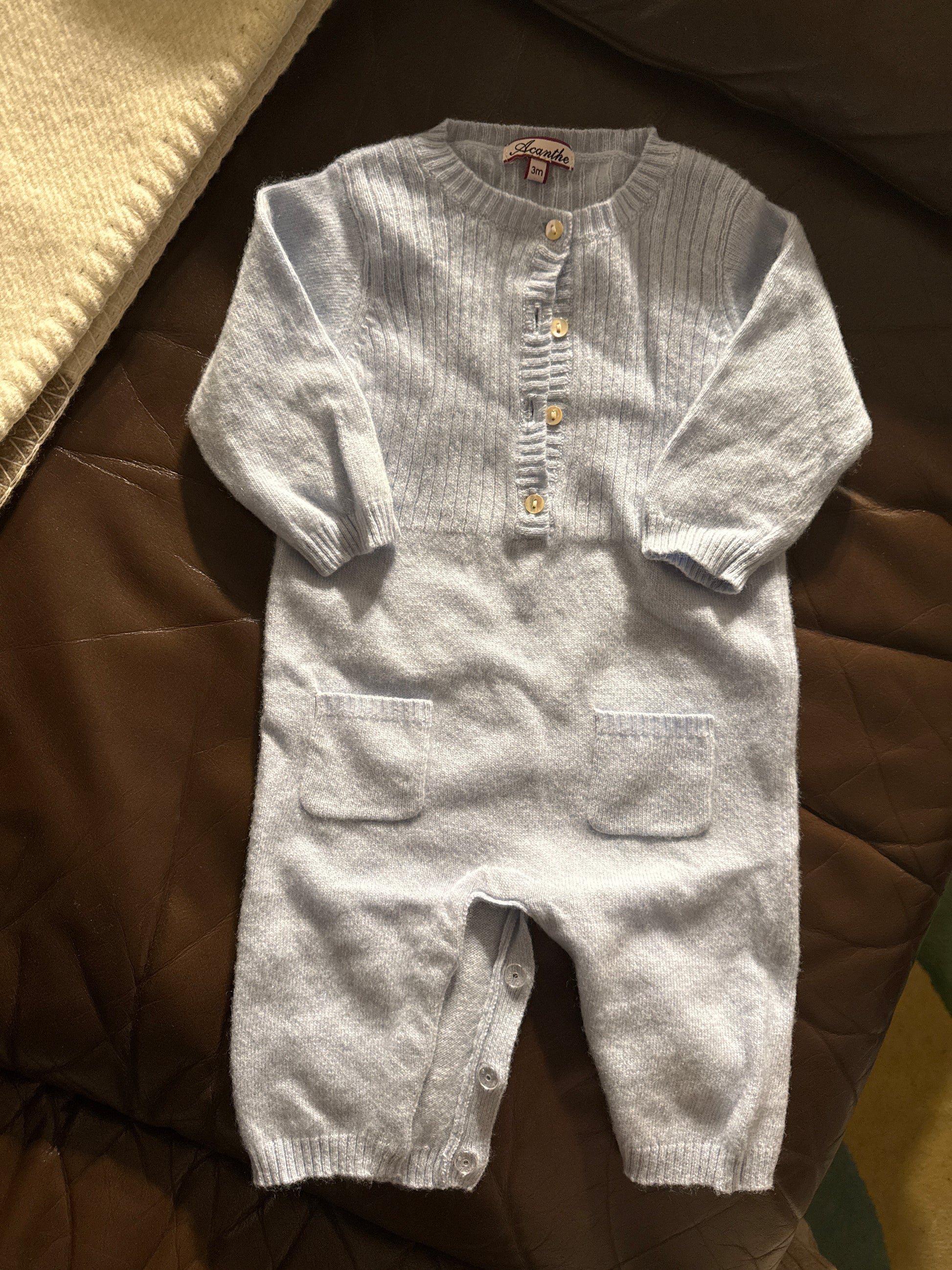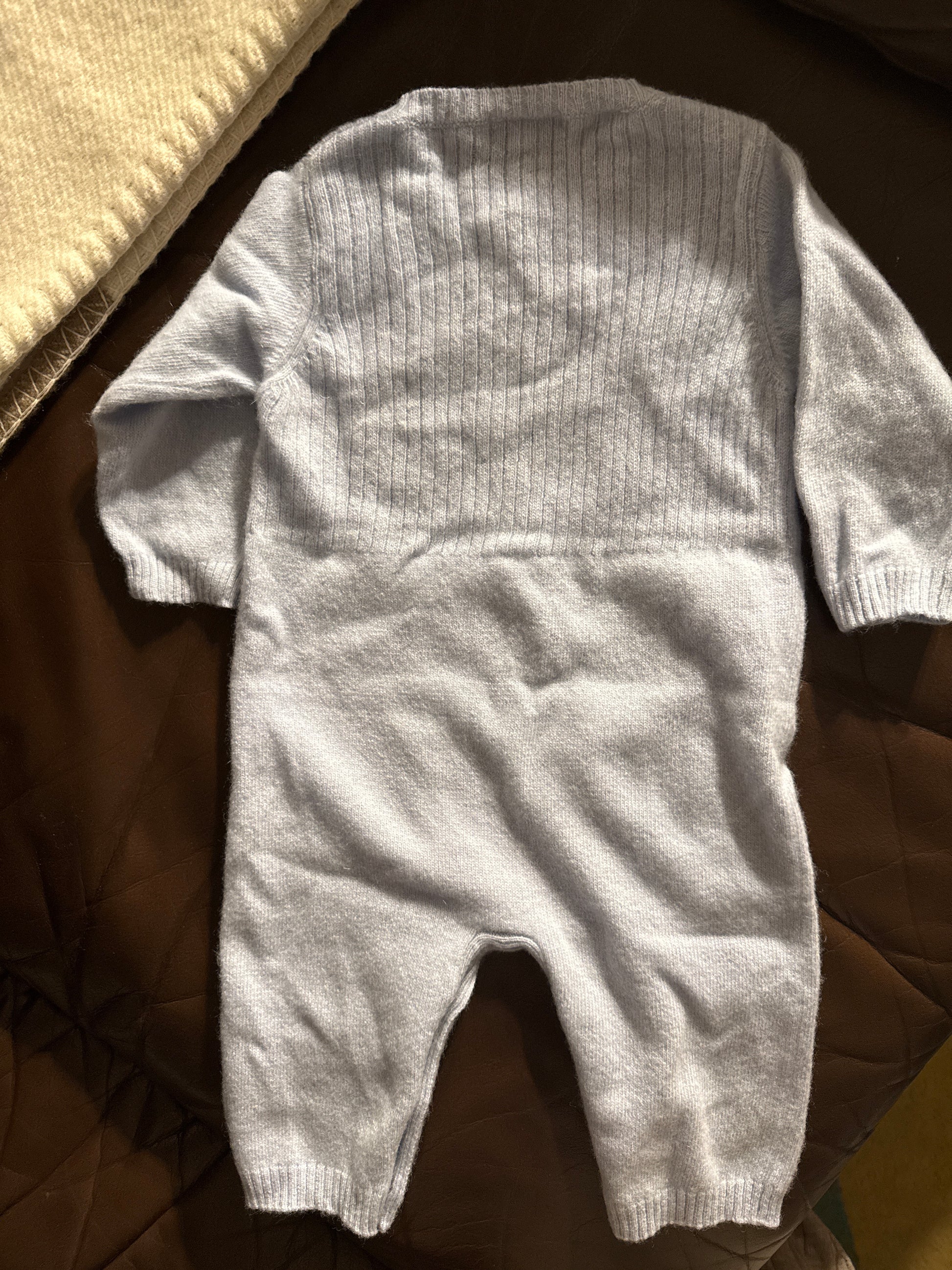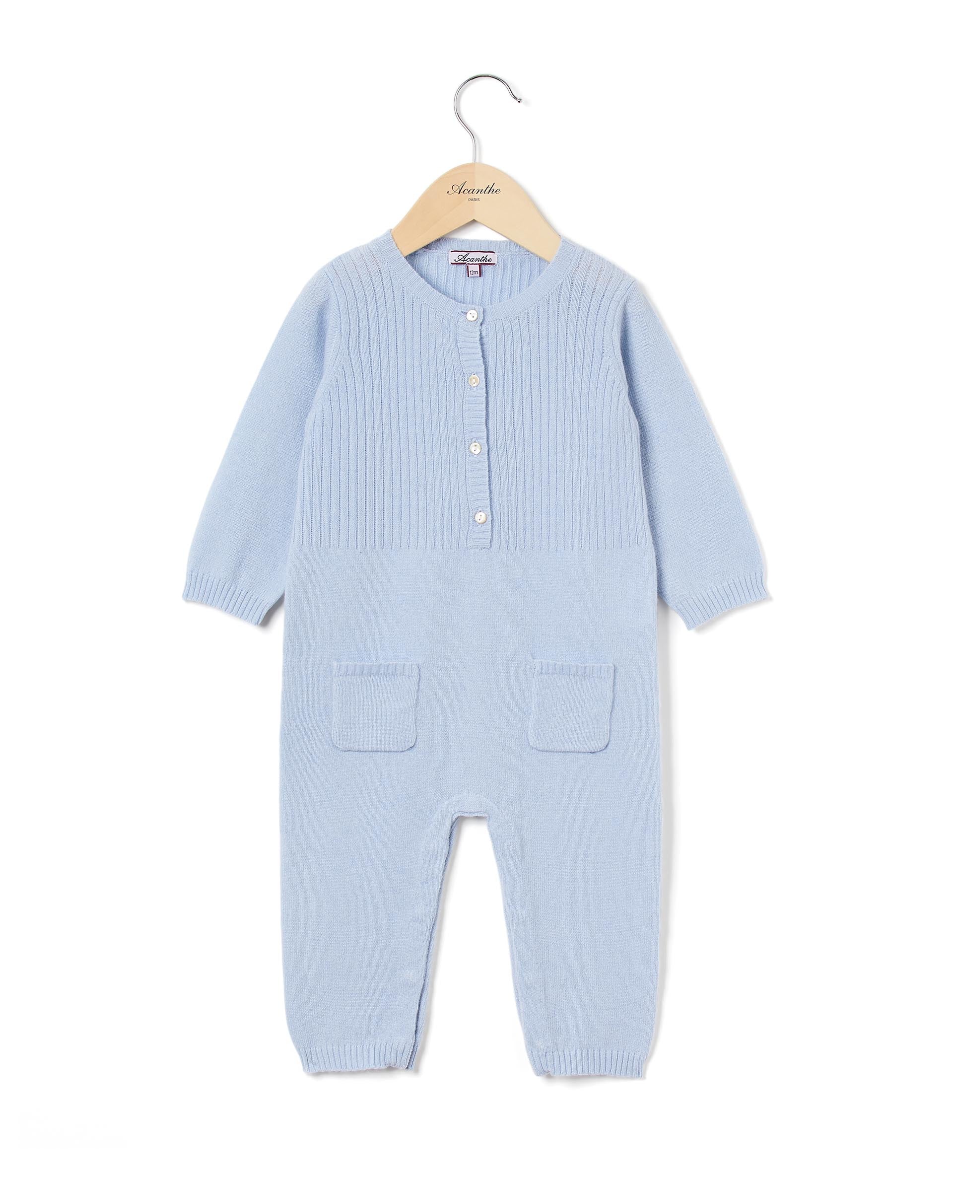 Combinaison bébé avec côtes plates, col rond, en laine et cachemire. Maille jersey. Entrejambe avec pressions.